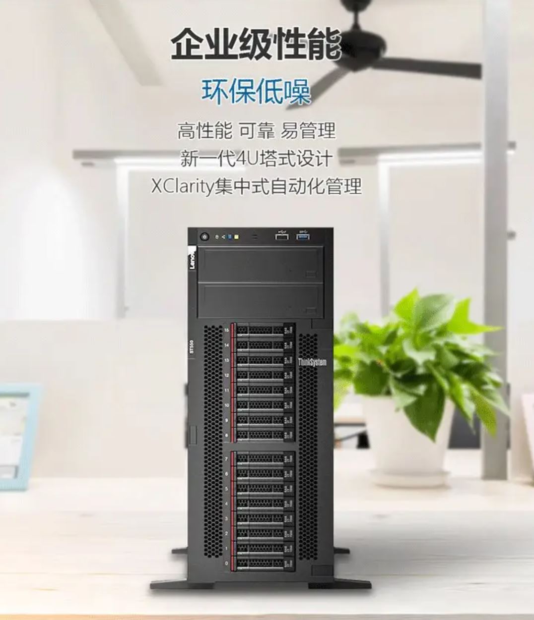 Lenovo ThinkSystem ST558 Lenovo ThinkSystem ST558 是一款可扩展的 4U 塔式服务器,配备两颗 强大的第二代英特尔®至强®可扩展处理器铂金系列,该处理器的总体性能 较上一代提升高达 36%*。ST558 提供符合您期望的数据中心性能和可靠 性,并针对办公环境进行了优化,具备物理安全性,并可以安静地运行。 它外形紧凑,占用空间较上一代减少37%,非常适合办公场所,以及用于 电子邮件/文件/打印和 Web服务、IT 基础架构、虚拟化、VDI 和私有云。 适合中小企业、远程或分支机构 ST558 支持 Lenovo AnyBay 技术,可以在相同机架内混用存储类型 (U.2/SAS/SATA)。多达 6 个 PCIe 适配器插槽和多个 RAID 选件, 提供您的 NIC、GPU 和其他适配器所需的灵活性。 灵活、安全 在 2P/4U 塔式服务器中提供企业级存储和性能 Ultrabook、赛扬、Celeron Inside、Core Inside、英特尔、英特尔标志、英特尔凌动、Intel Atom Inside、英特尔酷睿、 Intel Inside、Intel Inside 标志、英特尔博锐、安腾、Itanium Inside、奔腾、Pentium Inside、vPro Inside、至强、至强融 核、Xeon Inside 和英特尔傲腾是英特尔公司或其子公司在美国和/或其他国家(地区)的商标。 相比前几代产品,ST558拥有更多处理器内核、更大内存和更高 I/O带宽。它还提供更多内存通道、12Gb SAS互连;HDD、SSD、 NVMe 和 M.2 驱动器支持;以及多种 GPU,而且成本低于前几代 产品。 此外,可选的NVMe驱动器提供超快的存储,此存储支持分层以 实现更高应用程序性能。通过整合企业级 RAS 功能和跨服务器 组合的共享组件,可以提高可靠性、降低 TCO,并让您更加高枕 无忧。 出众性能 ThinkSystem ST558 具备独特的安全性举措。ThinkShield 是 一种全面的端到端安全性方法,它从开发开始并贯穿整个供应链 和设备的整个生命周期。 从数据中心到网络边缘,我们的首要工作是利用每款产品保护您 的业务。可上锁安全面板、防盗锁孔、机箱入侵开关和TPM 1.2/2.0等物理和软件安全性技术非常适合缺乏数据中心保护的远 程位置。 ST558还提供节约成本的特性,例如高能效 80 PLUS Platinum 和 Titanium 热插拔电源,可在标准高达 35°C 下持续运行,最 高支持 45°C(存在配置局限性)。
